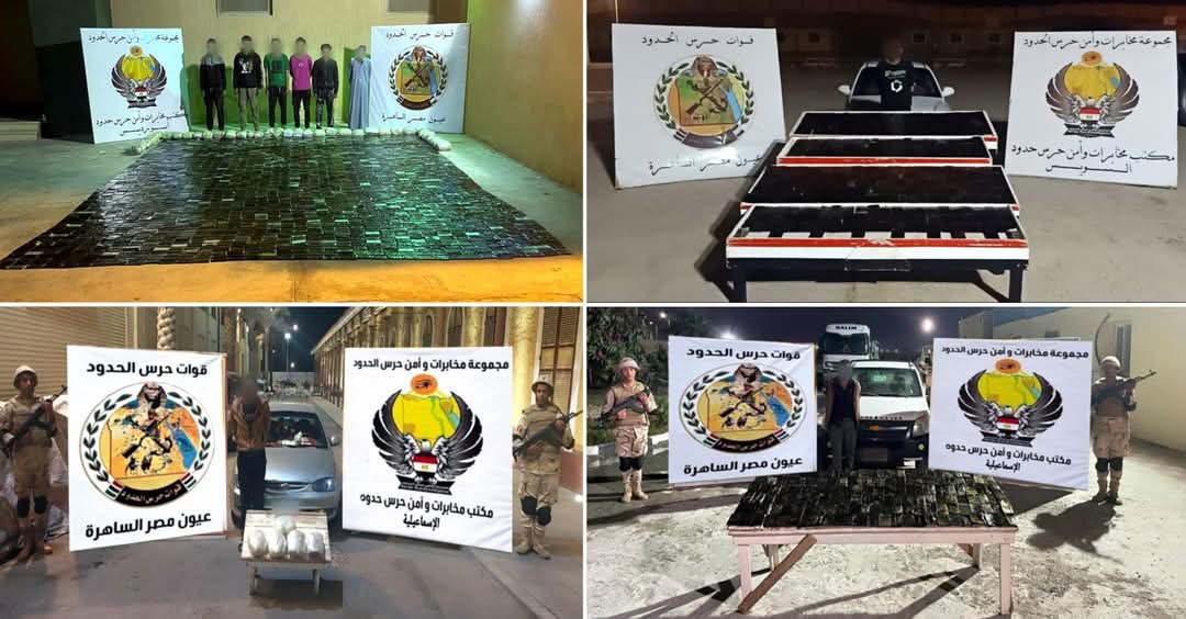 واصلت قوات حرس الحدود جهودها فى تنفيذ الضربات الناجحة وإحباط المحاولات التى تستهدف الإضرار بالأمن القومى المصرى، تنفيذًا لتوجيهات القيادة العامة للقوات المسلحة بتكثيف أعمال التأمين على كافة الإتجاهات الإستراتيجية.