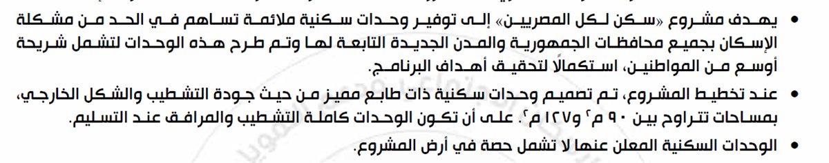 والطرح بنظام التخصيص بأسبقية الحجز والشقق فى عددا من المدن والمحافظات وهي حدائق العاصمة، وبدر، و6 أكتوبر، وحدائق أكتوبر، والعاشر من رمضان، و15 مايو، ورشيد، والعلمين الجديدة، وبني سويف الجديدة، والمنيا الجديدة، وناصر غرب أسيوط، وأسوان الجديدة، ومحافظات الدقهلية (جمصة)، ودمياط (شطا - تل وردة)، والبحر الأحمر (الغردقة)، والمنيا (مغاغة)، ومطروح، والشقق بمساحات تتراوح بين 90 مترًا إلى 127 مترًا.