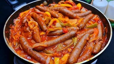 تضاف الصلصة وعصير الطماطم وباقي البهارات ثم يقلب الكل جيدًا.
