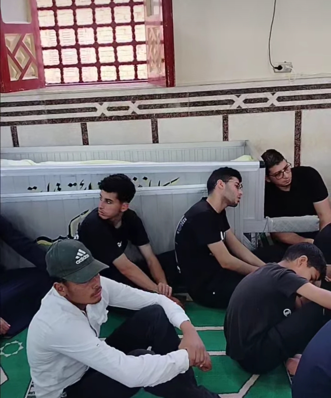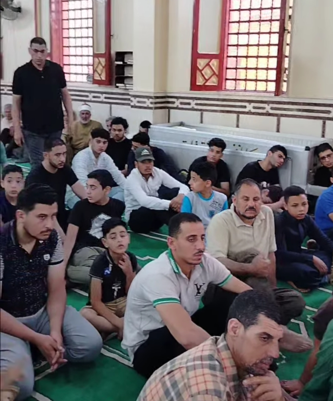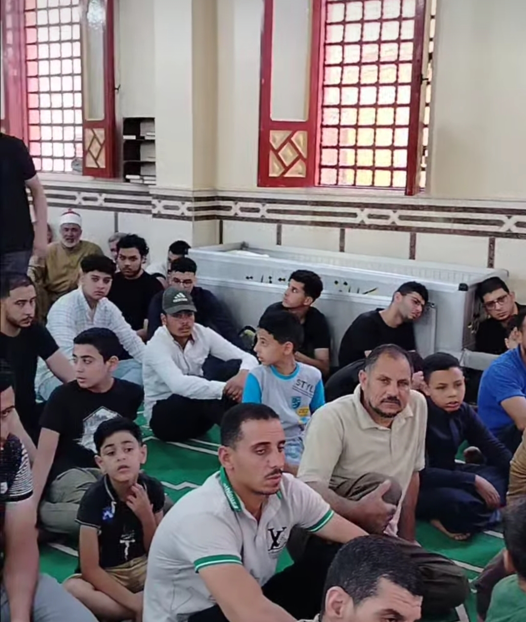 الحزن يسيطر على أحفاد الشيخ السيد سعيد أثناء انتظار الصلاة على جثمانه بالدقهلية