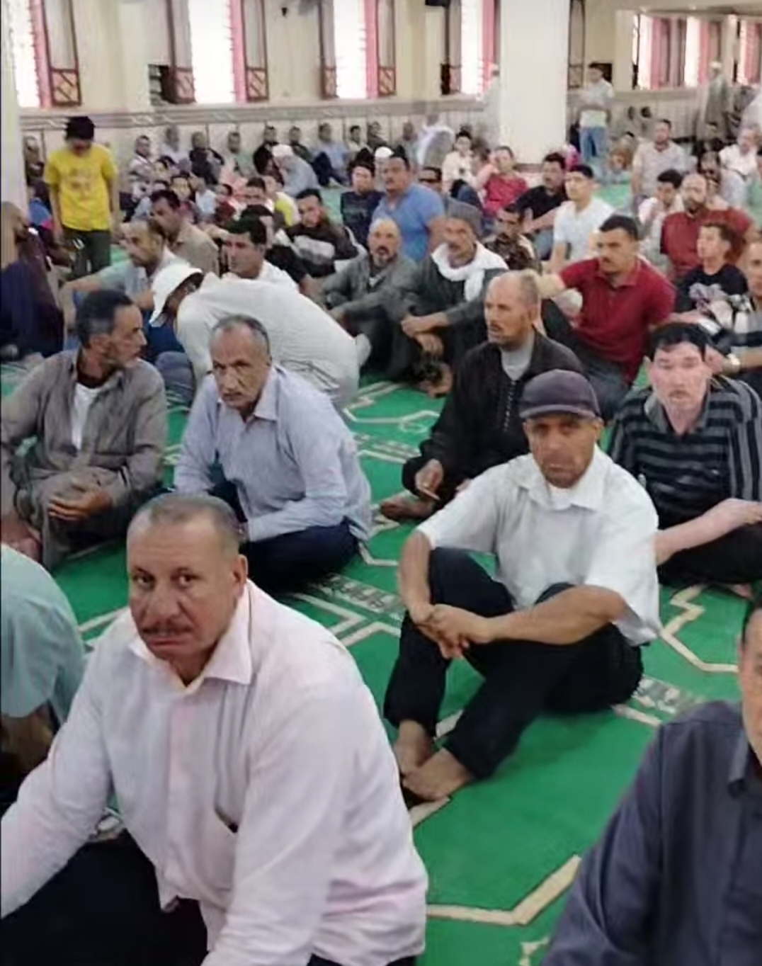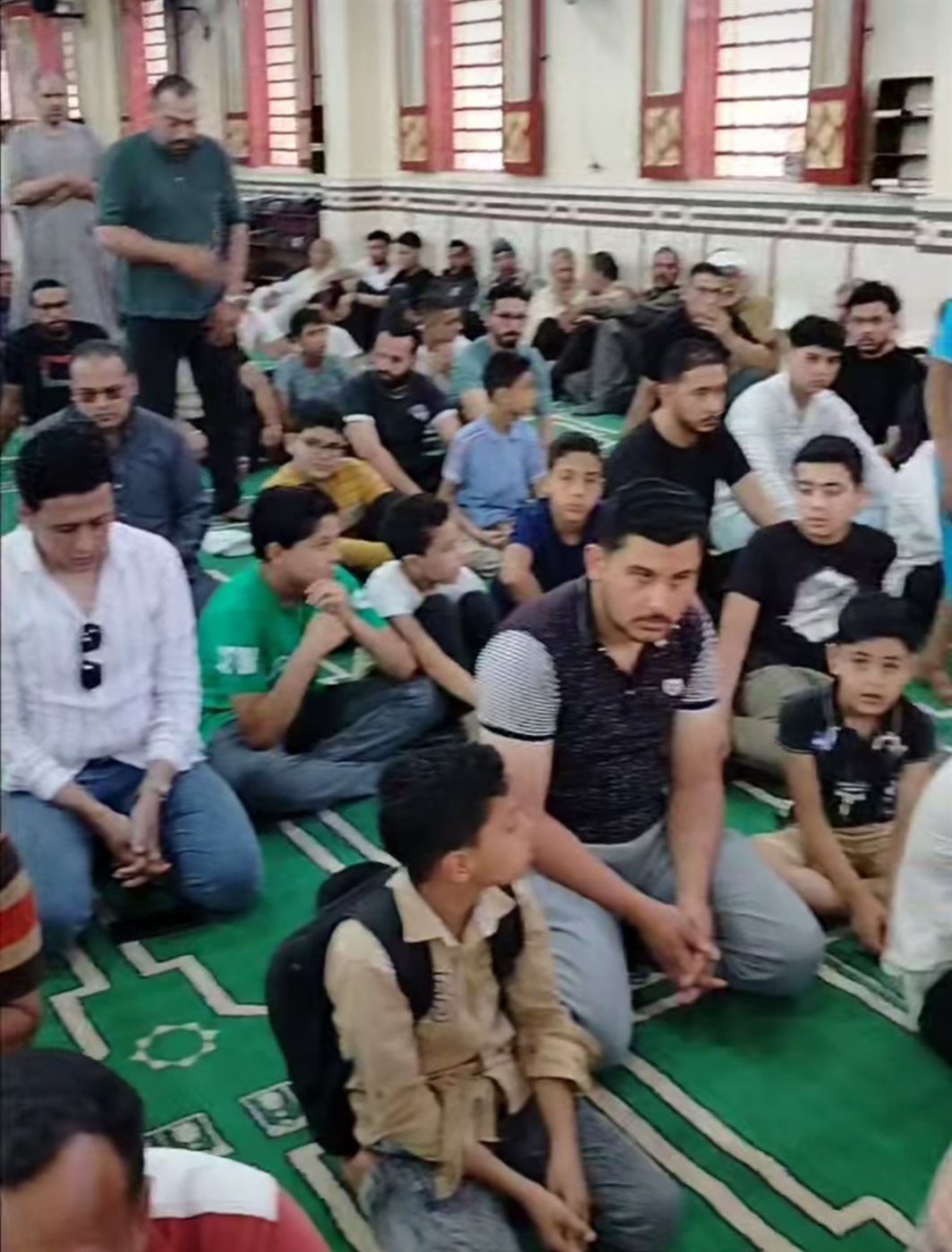 التف أحفاد الشيخ سيد سعيد الملقب بسلطان القراء حول الجثمان داخل المسجد قبل صلاة الجنازة لتشيع الجثمان لمثواه الأخير.