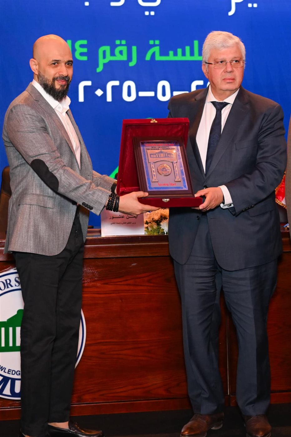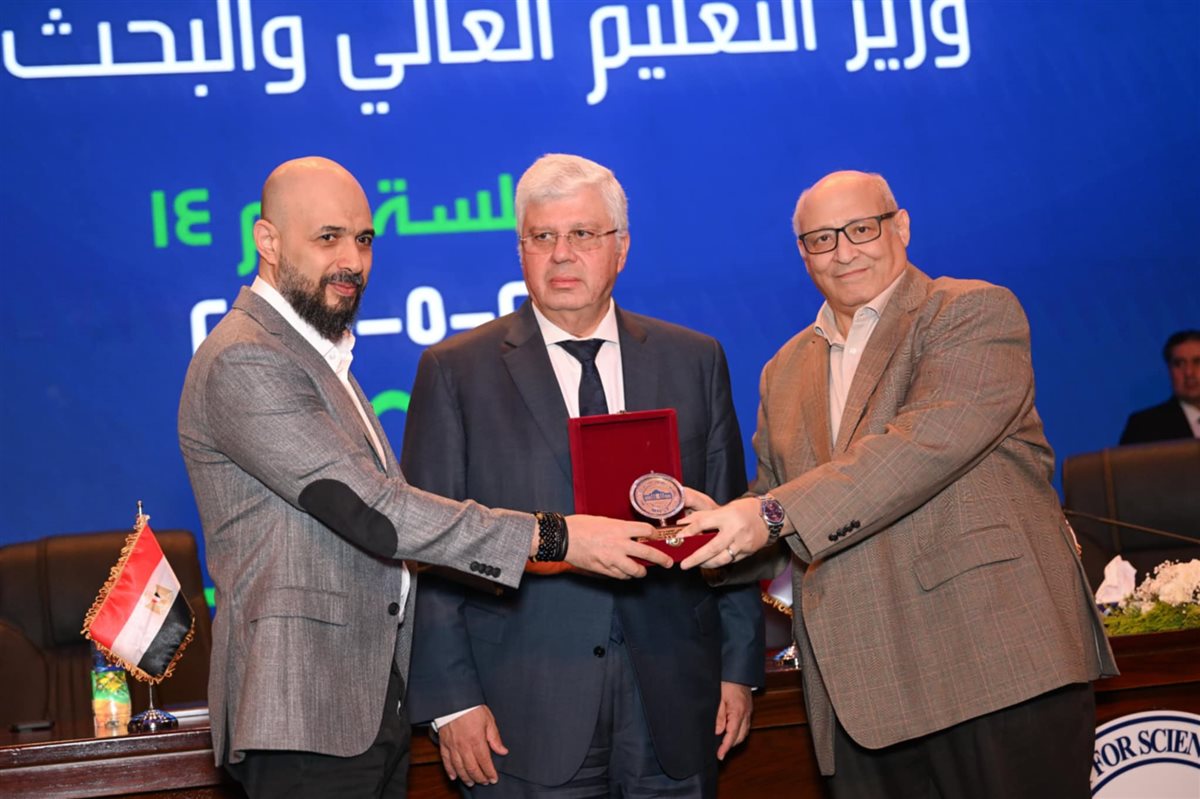 خالد الطوخي يكرم وزير التعليم العالي وكبار قيادات المجلس الأعلى للجامعات تقديرا لعطائهم في تطوير التعليم الجامعي.