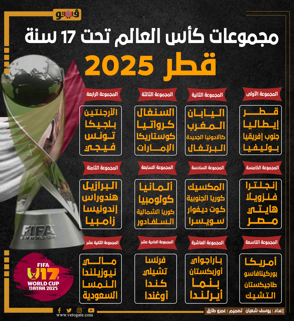 مجموعات كأس العالم تحت 17 سنة – قطر 2025 (انفوجراف)