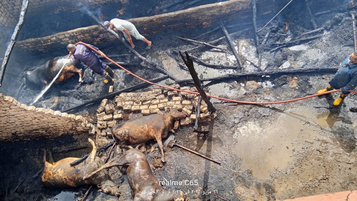 نفوق 16 رأس ماشية وأغنام وحصان حصيلة حريق عزبة الطين بالدقهلية (صور)