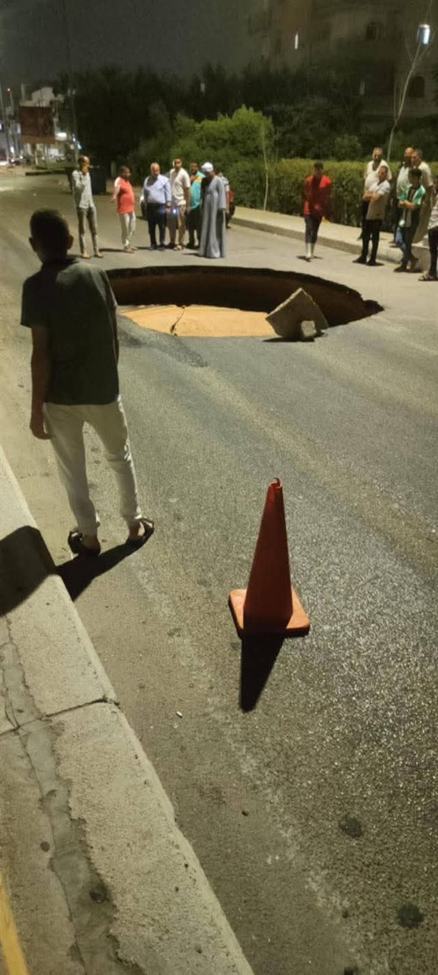 قطع طريقا رئيسيا، هبوط أرضي مفاجئ بمدينة السادات في المنوفية (صور)