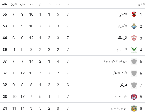 جدول ترتيب الدوري المصري مجموعة تحديد البطل
