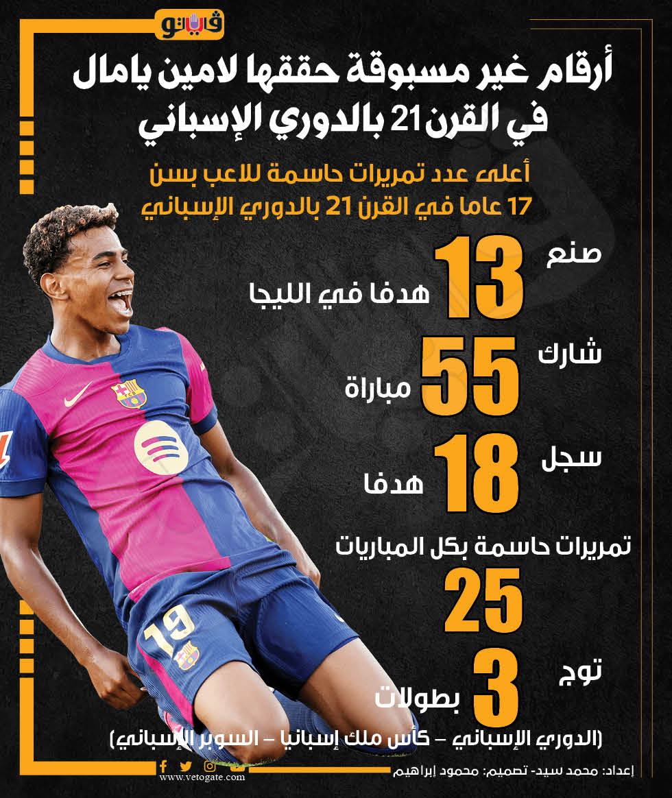 أرقام غير مسبوقة حققها لامين يامال في القرن 21 بالدوري الإسباني (إنفوجراف)
