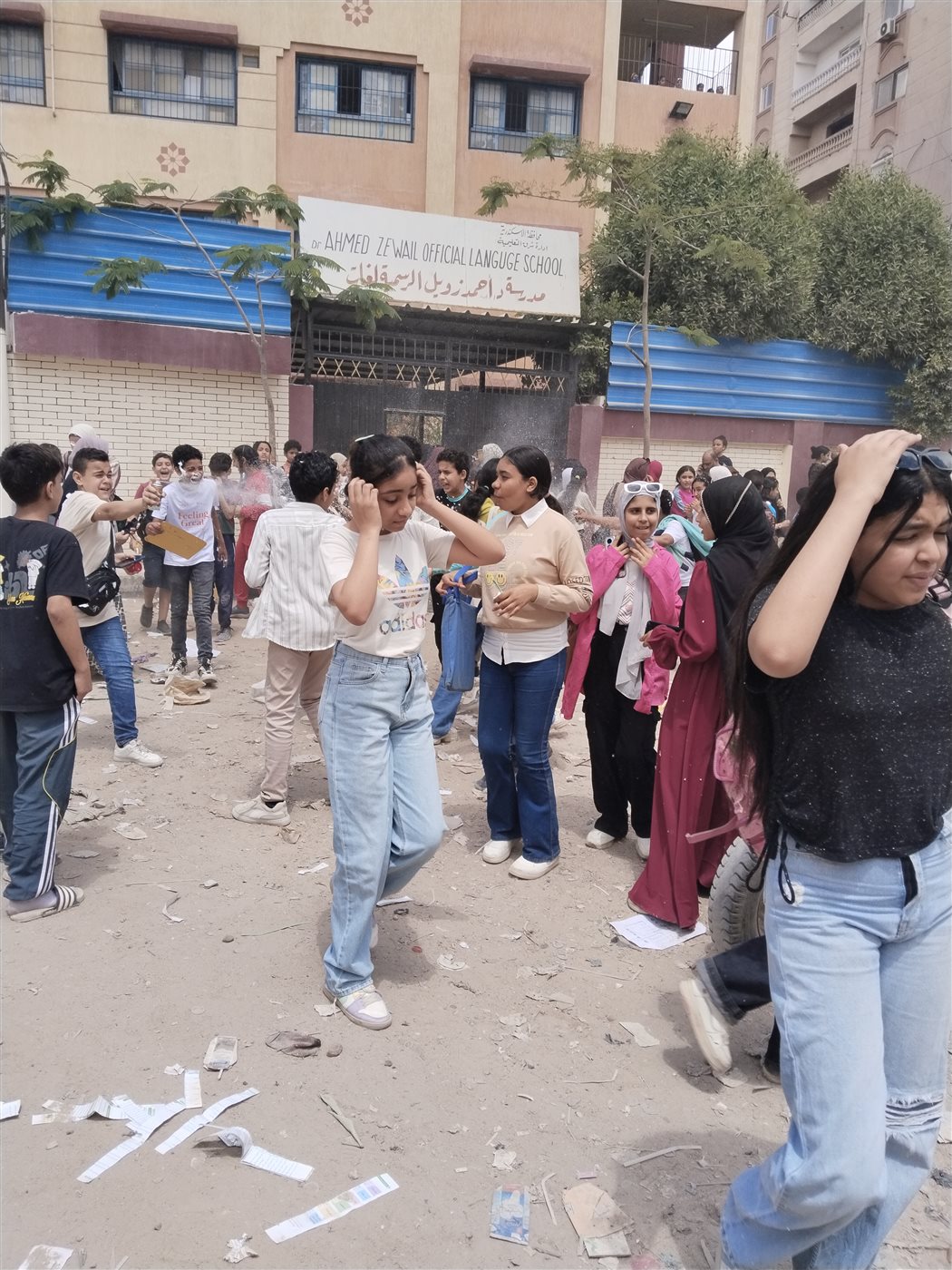 شهد محيط مجمع مدارس شرق محافظة الإسكندرية، احتفال طلاب وطالبات الصف الخامس والسادس الابتدائي بانتهاء ماراثون الامتحانات تزامنا مع الفصل الدراسي الثاني.