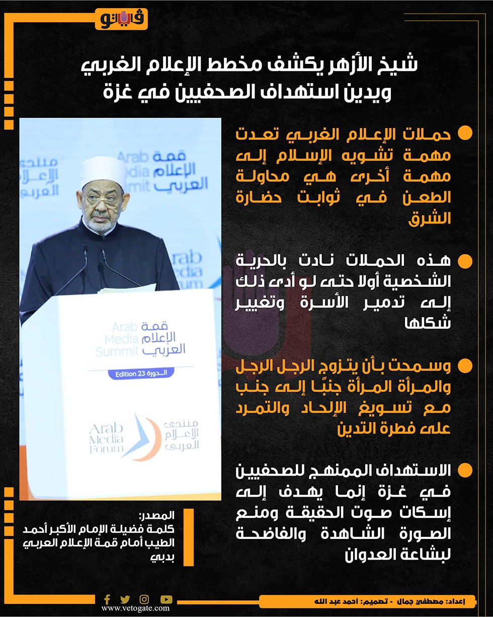 شيخ الأزهر يكشف مخطط الإعلام الغربي ويدين استهداف الصحفيين في غزة (إنفوجراف)