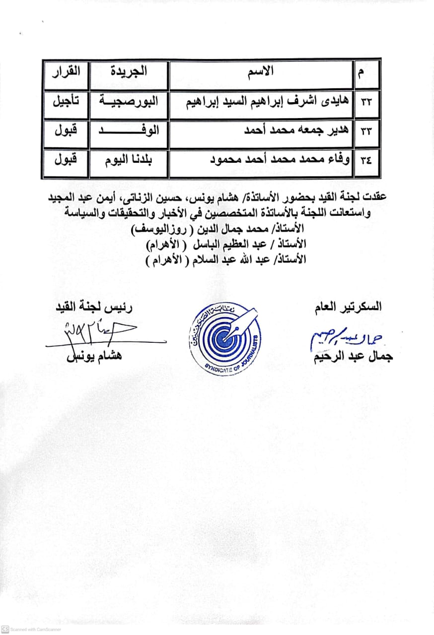 بالأسماء، اعتماد نتيجة لجنة المؤجلين بنقابة الصحفيين (صور)