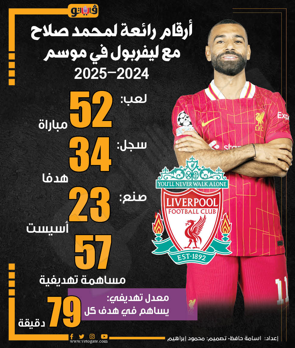 أرقام رائعة لمحمد صلاح مع ليفربول في موسم 2024-2025 (إنفوجراف)