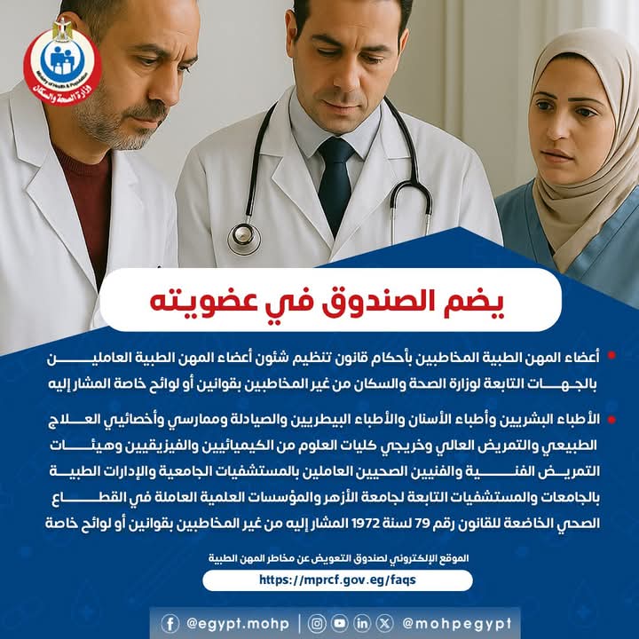 الصحة تعلن الفئات المستفيدة من صندوق التعويض عن مخاطر المهن الطبية