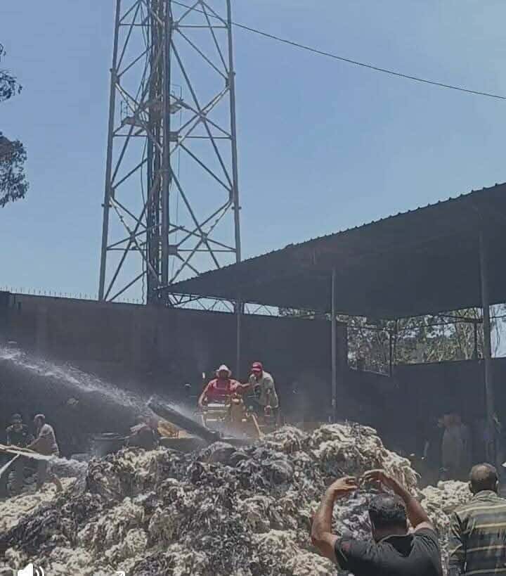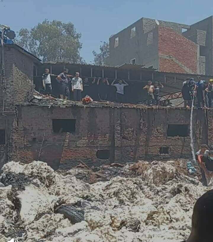 ماس كهربائي يتسبب فى احتراق مصنع كبس وحلج القطن بالمنزل