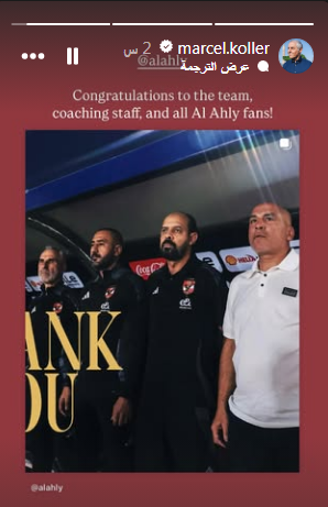 وعلق كولر على الصورة: "تهانينا للفريق، للجهاز الفني ولجماهير النادي الأهلي".