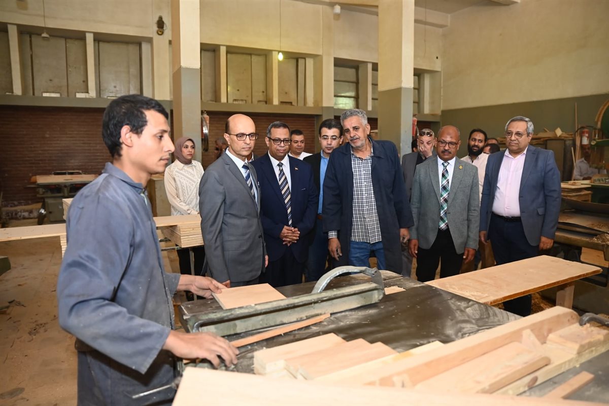 رئيس جامعة أسيوط يتفقد ورش الحدادة والنجارة بكلية الهندسة (صور)