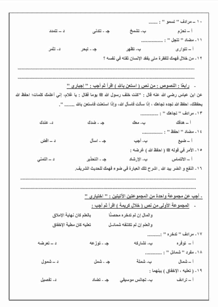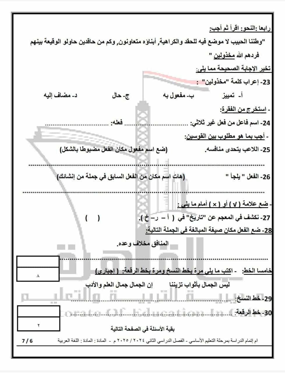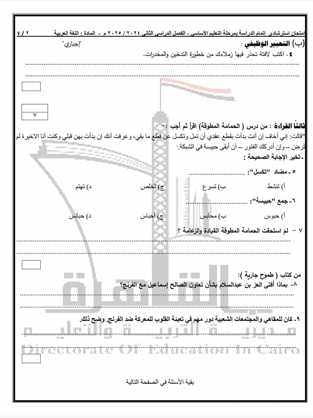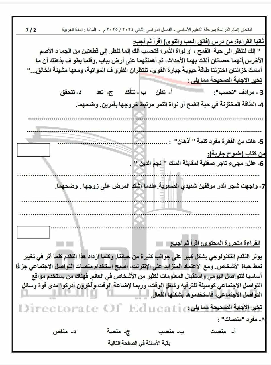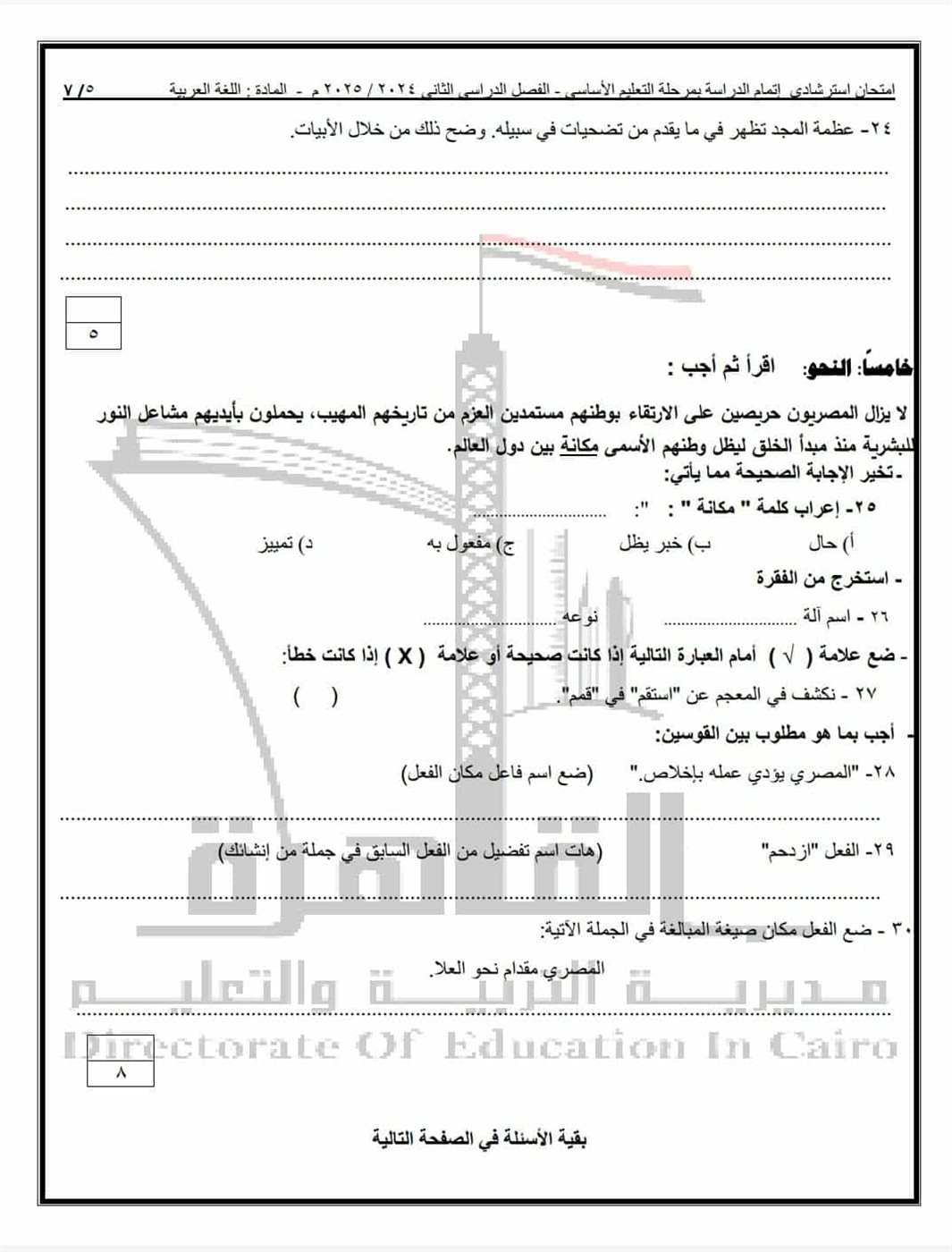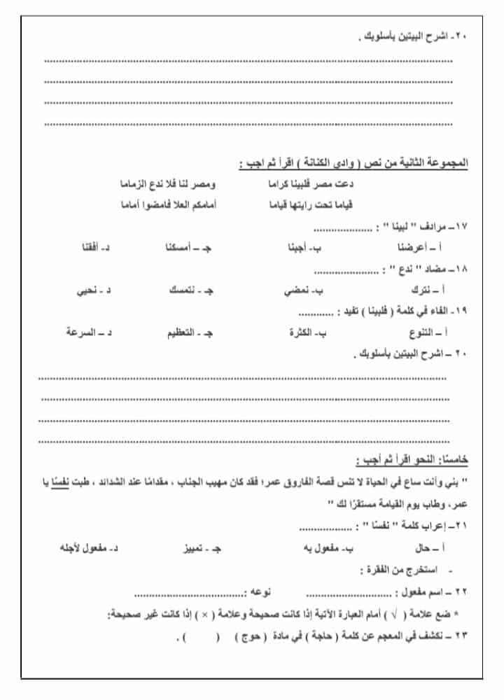 لطلاب الشهادة الإعدادية 2025، المراجعة النهائية لامتحان اللغة العربية (صور)