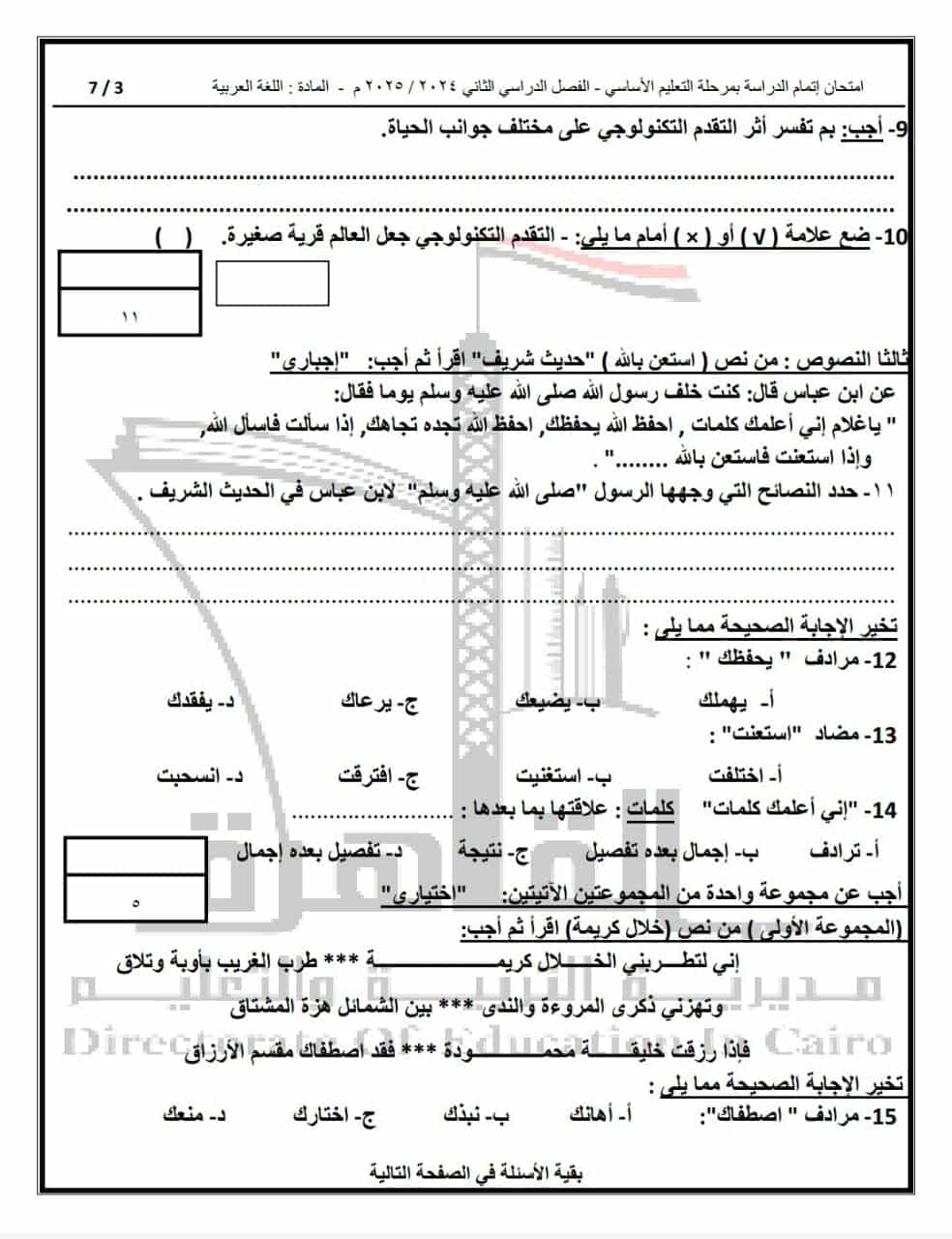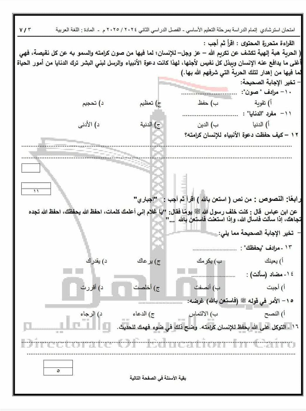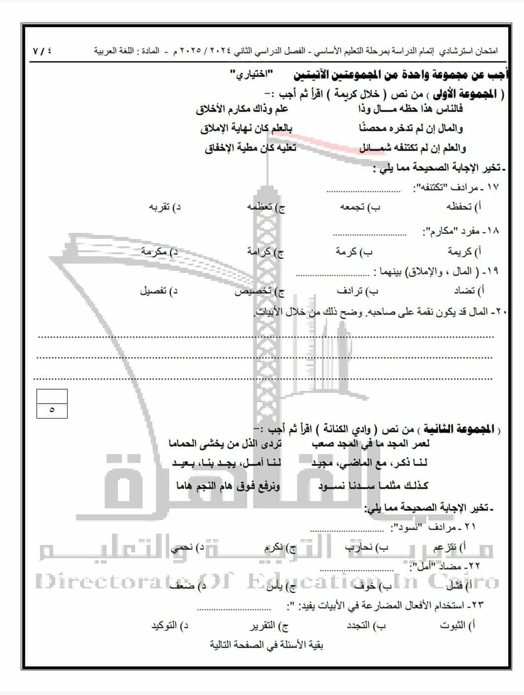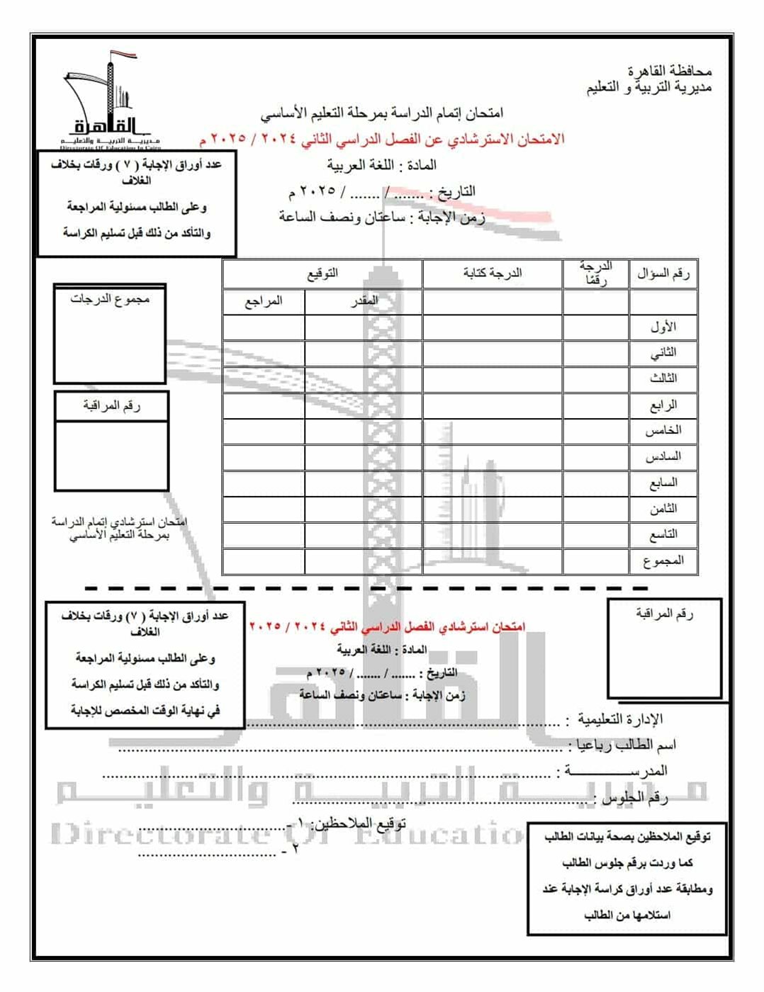 ونشرت مديرية التربية والتعليم بالقاهرة نماذج امتحان البوكليت في مادة اللغة العربية كمراجعة نهائية للطلاب قبل امتحانات الغد، وذلك لتعزيز قدرة الطلاب على الإجابة بكفاءة وتميز.