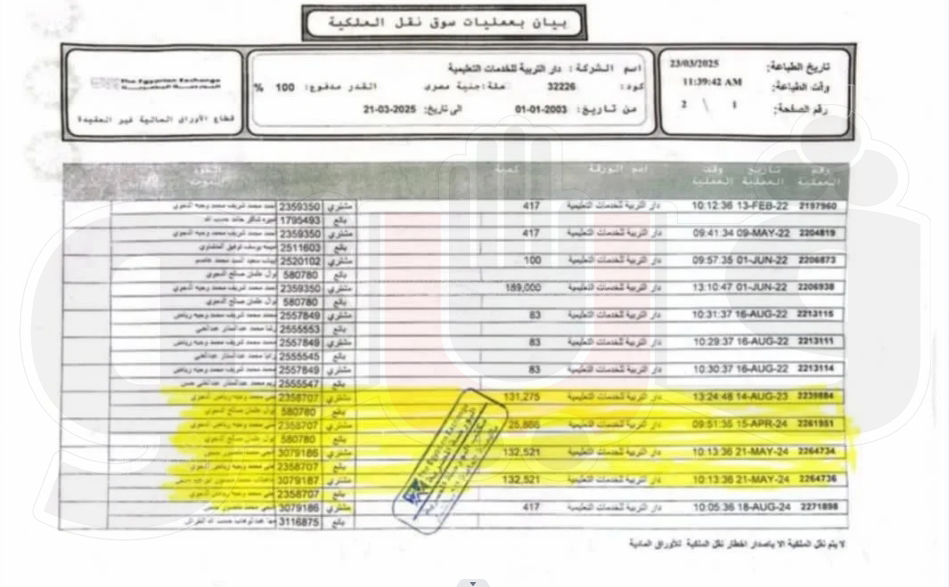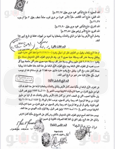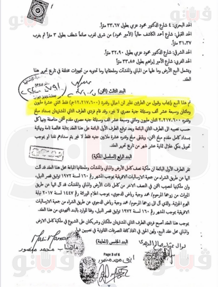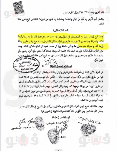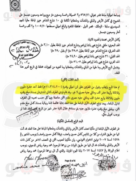 وشملت عمليات البيع كذلك نصف العقار الكائن في 30 شارع أمين الرافعي – الدقي، بمساحة تبلغ 1698.45 مترًا مربعًا، بمبلغ 19,107,800 جنيه، وسُدد منها 1,107,800 جنيه كمقدم.