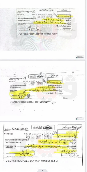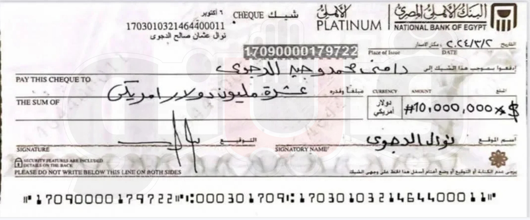 بالإضافة إلى عقود البيع، كشفت المستندات عن إصدار شيكات بمبالغ ضخمة من الدكتورة نوال الدجوي لصالح حفيدتيها إنجي وماهيتاب، وهو ما يطرح تساؤلات قانونية وشخصية حول هذه التحويلات والتصرفات المالية، في ظل النزاع الدائر بين أفراد العائلة.