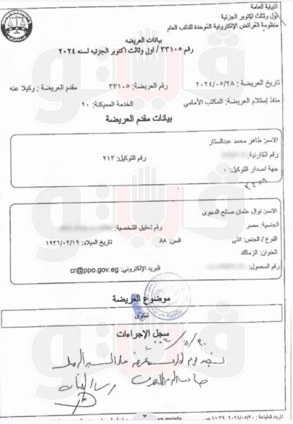 وفي نفس اليوم، وقعت الدجوي عقد بيع كامل لعقار يقع في 14 شارع عامر – الدقي – الجيزة، بقيمة إجمالية 9,410,540 جنيه، دفع منها 1,410,540 جنيه كمقدم.