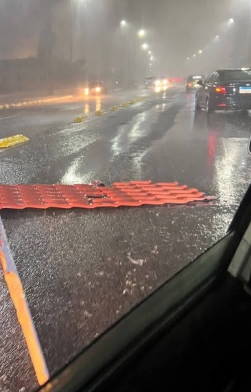 وتطايرت لوحات إعلانات بطريق الكورنيش، وانفجار مواسير صرف ومياه في منطقة ٤٥، وسط استغاثات المواطنين بسبب غرق الشوارع في مياه الأمطار.