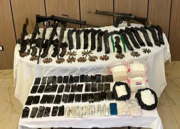 وشملت المضبوطات 150 كيلو جراما من المواد المخدرة المتنوعة: (حشيش – هيدرو – شابو – هيروين – أفيون)، 23 ألف قرص مخدر، 38 قطعة سلاح ناري: 10 بنادق آلية – 17 بنادق خرطوش – بندقية رصاص – 9 فرد محلي – طبنجة.