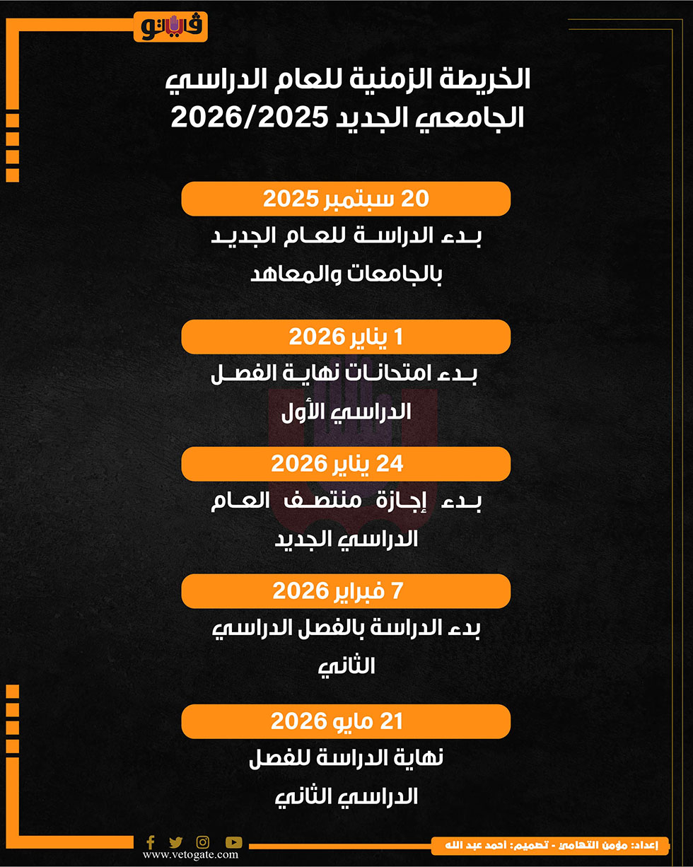 الخريطة الزمنية للعام الدراسي الجامعي الجديد 2025/2026 (إنفوجراف)