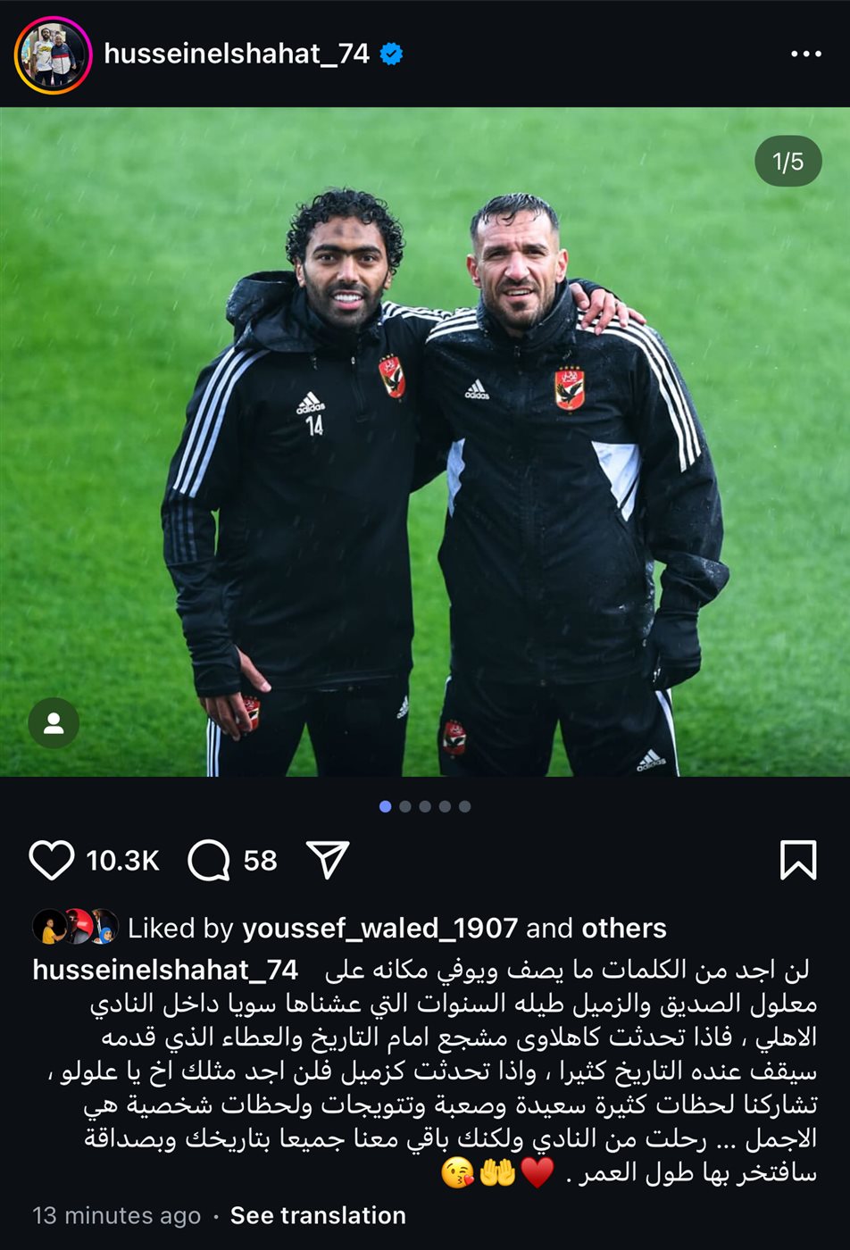 وأكمل: “اليوم، أكتب لكم خبر رحيلي والدمع يزاحم الحبر، لكني أمضي وأنا مطمئن، لأن قلبي سيبقى في مدرجاتكم، وصوتكم سيظل في أذني، لا أبالغ حين أقول إنني وجدت في الأهلي بيتًا أكبر من كل البيوت، ووطنًا ثانيًا صدق الانتماء له كأنه الأول”.