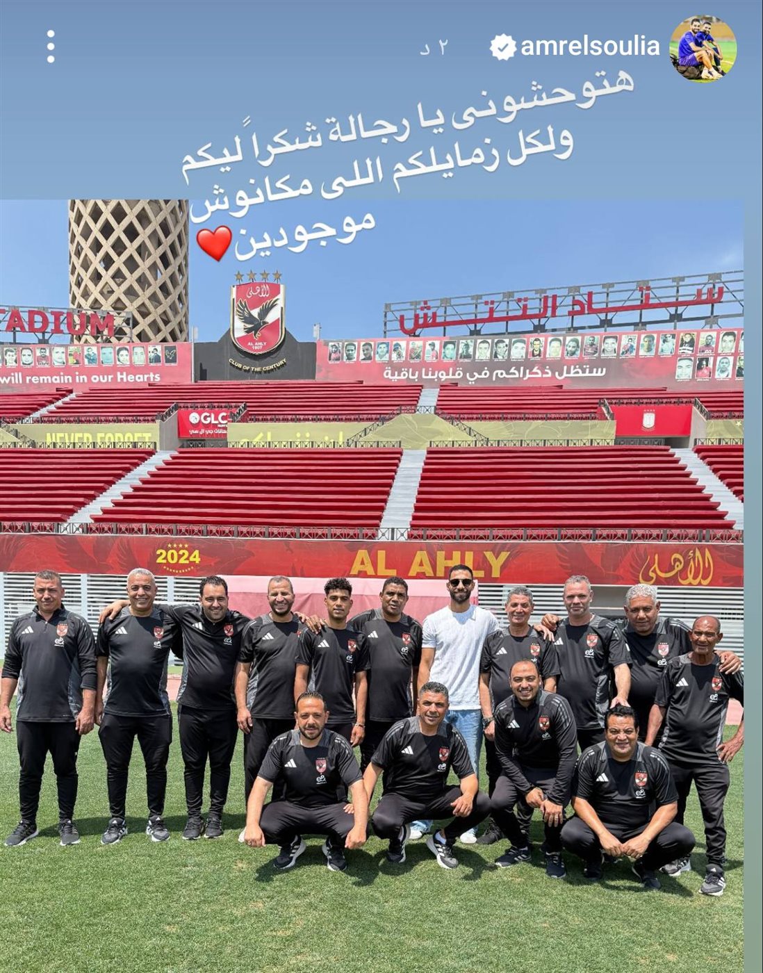 ونشر عمرو السولية صوره له رفقة عمال المهمات بالنادي الأهلي وكتب: هتوحشوني يارجالة شكرا ليكم ولكل زمايلكم والي مكانوش موجودين.