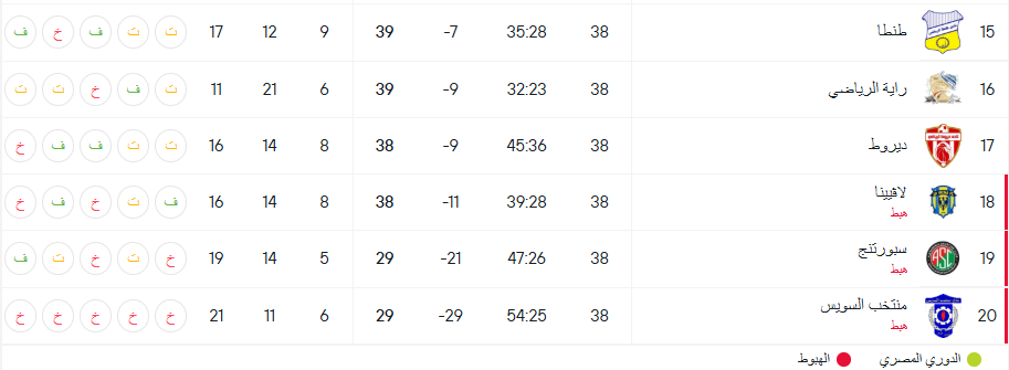 بينما تأكد هبوط كل من لافيينا ومنتخب السويس وسبورتنج إلي دوري القسم الثاني ب.