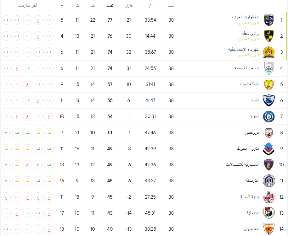 جدول ترتيب دوري المحترفين بعد نتائج الجولة الأخيرة