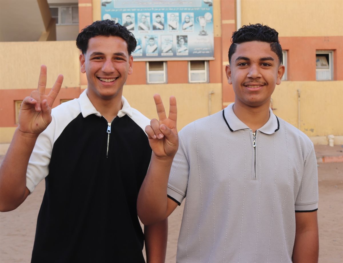 ورصدت فيتو الابتسامة علي وجوه الطلاب والطالبات رافعين علامة النصر تعبيرا عن إصرارهم علي النجاح وذلك في مدارس مركز بني عبيد في الدقهلية .