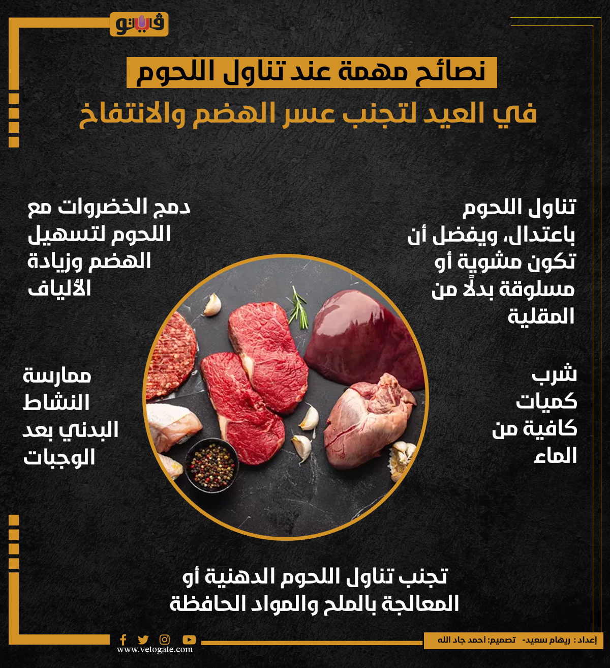 نصائح مهمة عند تناول اللحوم في العيد لتجنب عسر الهضم والانتفاخ (إنفوجراف)