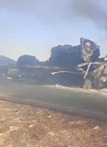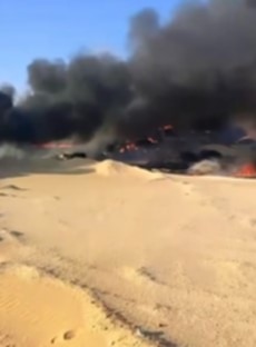 المعاينة تحدد هوية ضحايا انفجار سيارة محملة بالوقود على طريق الواحات