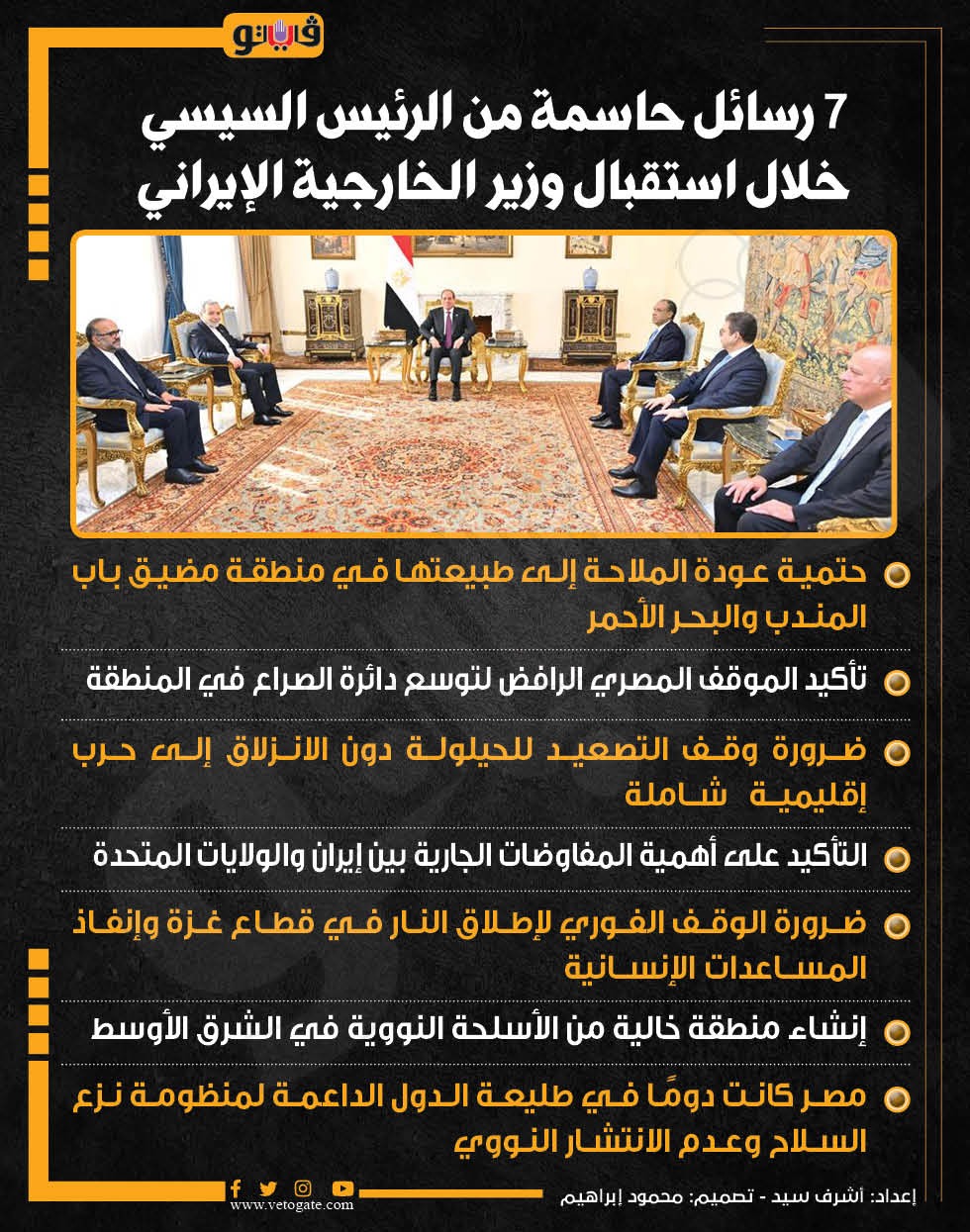 7 رسائل حاسمة من الرئيس السيسي خلال استقبال وزير الخارجية الإيراني (إنفوجراف)
