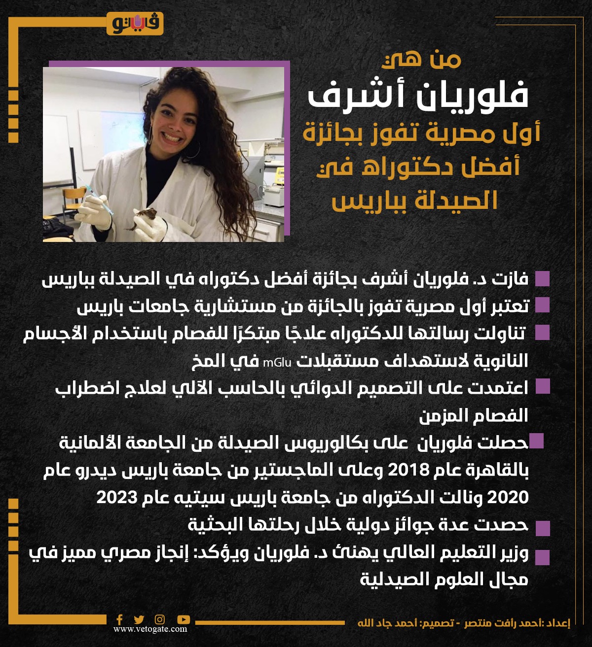 من هي فلوريان أشرف أول مصرية تفوز بجائزة أفضل دكتوراه في الصيدلة بباريس (إنفوجراف)