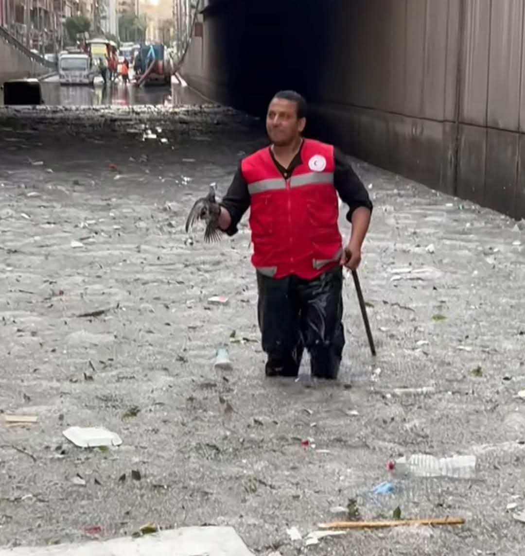 وأوضح سعودي، أن خلال العاصفة الأخيرة التي ضربت محافظة الإسكندرية، كانوا من أوائل الناس في الشارع وبالتنسيق مع الهلال الأحمر المصري في القاهرة، وبالفعل تمكنا من إنقاذ سائق التوكتوك واثنين كانوا معه، وكانت واقعة إنقاذ الحمامة الشهيرة والتي كان بطلها محمد شعبان الذي تحرك عندما لمحها بعد أن أنقذ التوكتوك ومن فيه، فنحن ننقذ أي روح سواء بشر أو حيوان أو طير فتلك عقيدتنا.