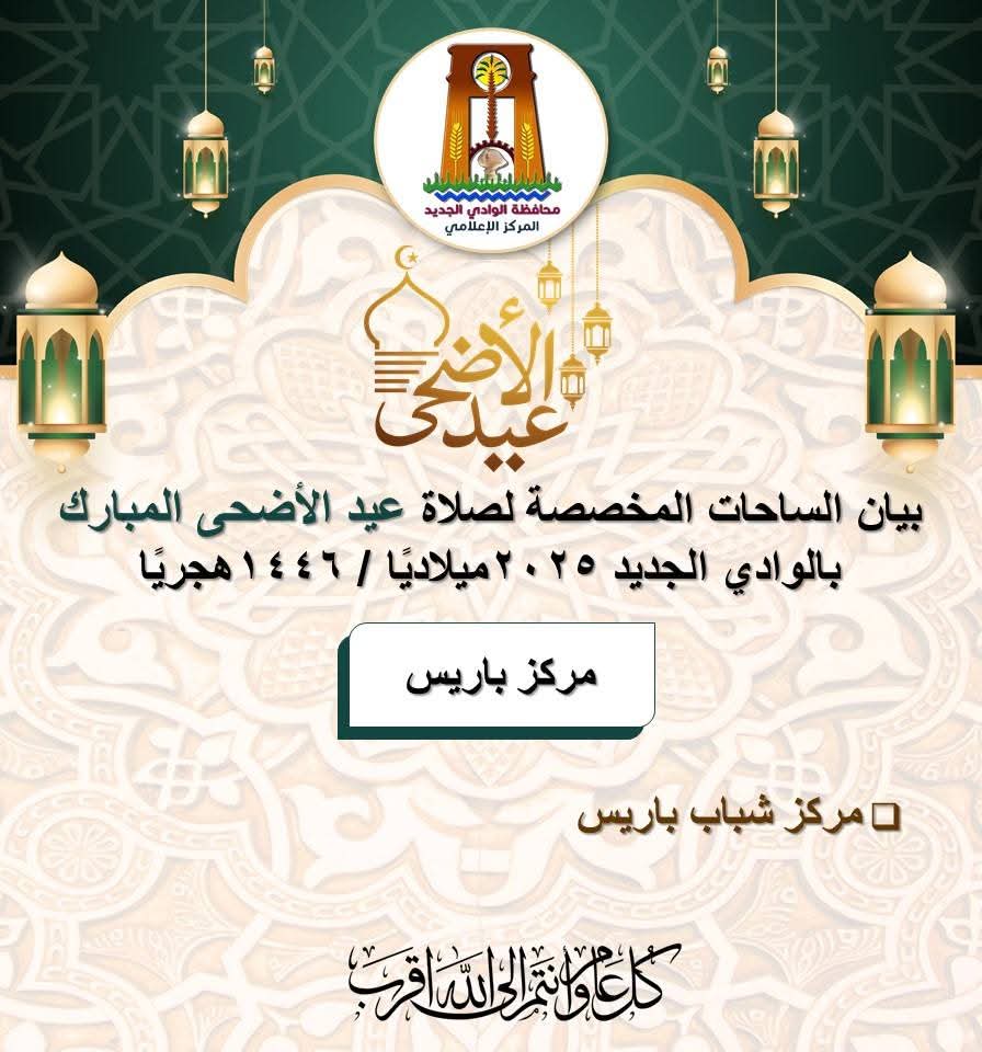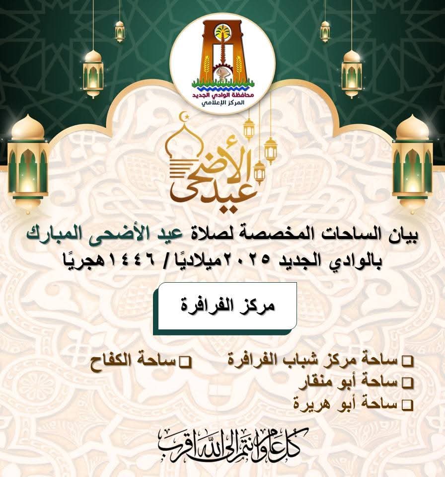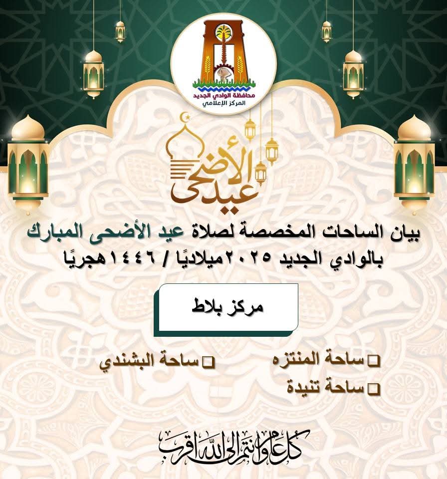 هدايا ووسائل مواصلات، الوادي الجديد تعلن أماكن ساحات صلاة عيد الأضحى