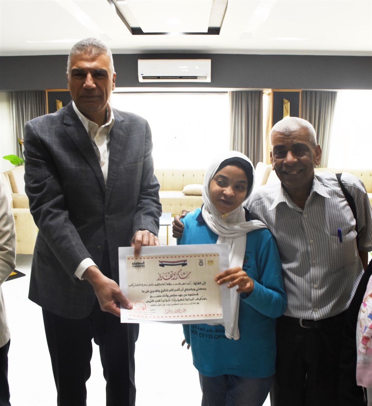فيما قدم والد البطلة آلاء شكرهم لمحافظ أسوان على هذا التكريم لابنتهم، والذي يعتبرونه وساما على صدورهم، ويؤكد على الفكر والوعي المستنير لمحافظ الإقليم فى اهتمامه بالنماذج الناجحة فى كافة المجالات، مشيدا بهذه اللفتة الطيبة لتكريم آلاء، وليكون ذلك حافزًا ويساعدها فى رفع الروح المعنوية لها لاستكمال رحلتها فى التميز والتفوق وحصد المزيد من الميداليات والمراكز المتقدمة فى المنافسات والبطولات المختلفة.