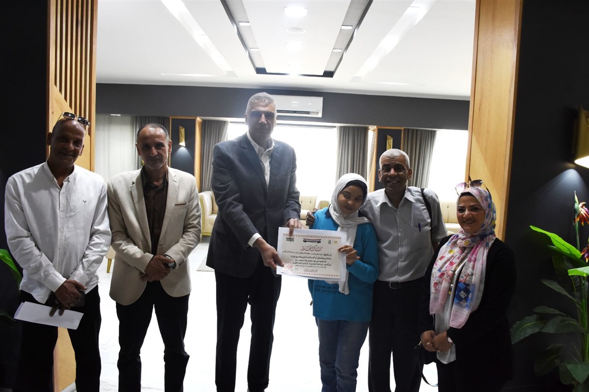 فازت بذهبية 200 و100 متر عدوا، محافظ أسوان يكرم آلاء بطلة ألعاب القوى (صور)