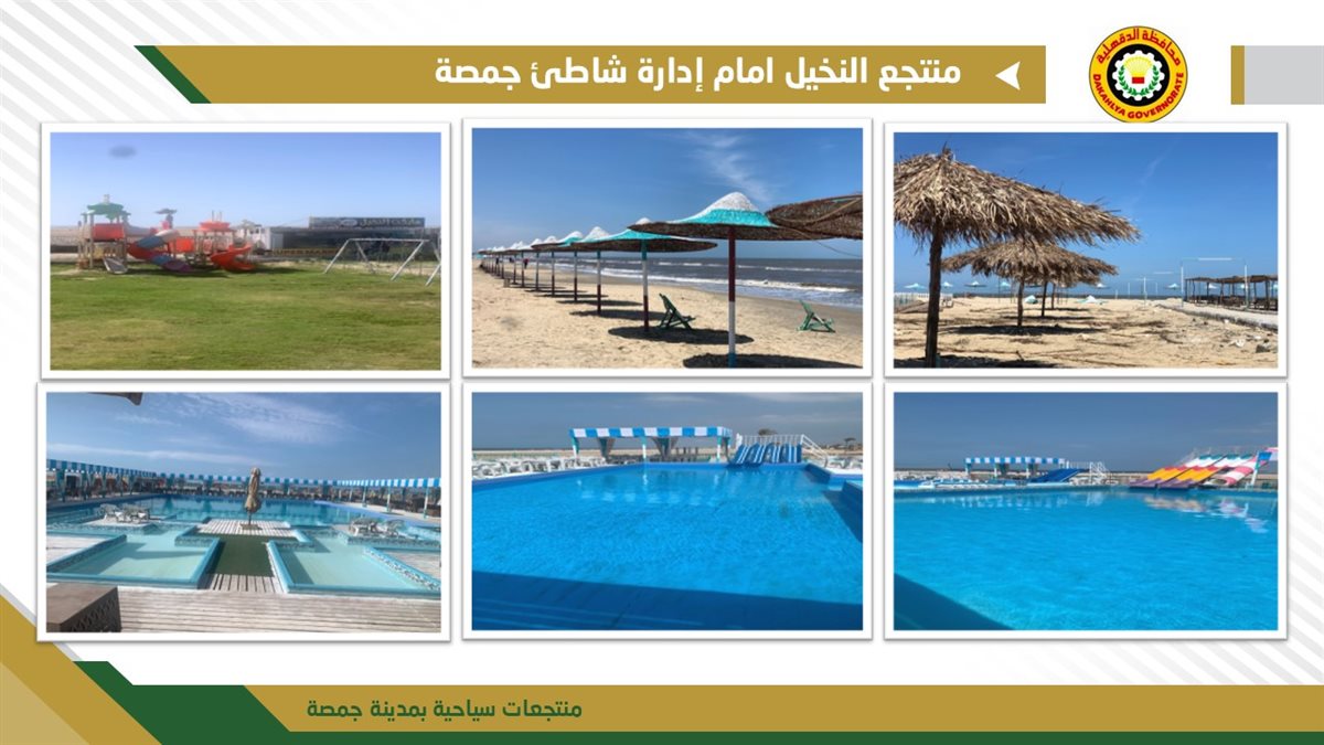 ومن جانبه أكد اللواء طارق مرزوق محافظ الدقهلية، أنه تم الانتهاء من أعمال إقامة 3 منتجعات سياحية جديدة، وتطوير ورفع كفاءة منتجعين، بالإضافة إلى تطوير ورفع كفاءة كورنيش وشاطئ مصيف جمصة، وذلك استعدادا لبدء موسم المصيف وتوافد المواطنين على المدينة، إلى جانب أعمال تطوير ورفع كفاءة وتجميل المدخل الرئيسي والمداخل والميادين لمدينة جمصة.