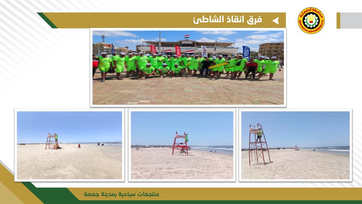 ومن جانبه، أكد الدكتور أحمد العدل نائب محافظ الدقهلية، أنه تم التعاقد مع شركات فرق الإنقاذ وأصبحت في جاهزية واستعداد تام لبدء العمل بطول شاطئ جمصة، وأضاف أن هذه الفرق تعمل على مدار اليوم بزي موحد، لحماية المصطافين والتأكد من عدم تجاوزهم الخط المسموح به في السباحة على الشاطئ، أو تعرضهم للغرق.