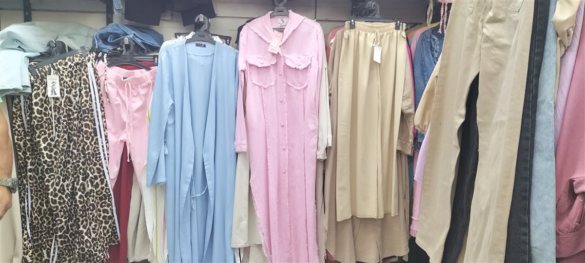 وأضاف أن هناك العديد من أنواع الملابس النسائية المتوفرة لديهم، والتي تشمل الملابس الكاجوال مثل "تيشرتات، بناطيل جينز وقطن، تونيكات وبلوزات بتصاميم متنوعة"، بالإضافة إلى ملابس الخروج مثل "فساتين، جيبات، أطقم جاهزة، بلوزة وبنطلون أو جيب"، بالإضافة إلى الجاكيتات المصنوعة من خامات مختلفة حسب الموسم.