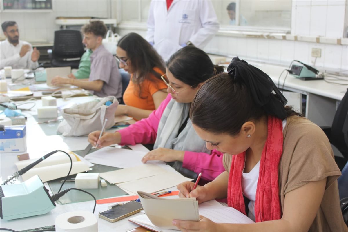 اختتمت دار الكتب والوثائق القومية برئاسة الدكتور أسامة طلعت مساء اليوم برنامج الدورة التدريبية المكثفة فى مجال ترميم المقتنيات الثقافية التى عقدت بالتعاون مع صندوق التنمية الثقافية برئاسة المهندس حمدي السطوحي لمجموعة من طلاب الدراسات العليا بالجامعة الأمريكية بالقاهرة على مدار 18 ساعة تدريبية خلال الفترة من (2-4) يونيو 2025 فى مقر مركز الترميم والصيانة والميكروفيلم بالإدارة المركزية للمراكز العلمية اعتمادًا على خبرات الباحثين بالمركز.