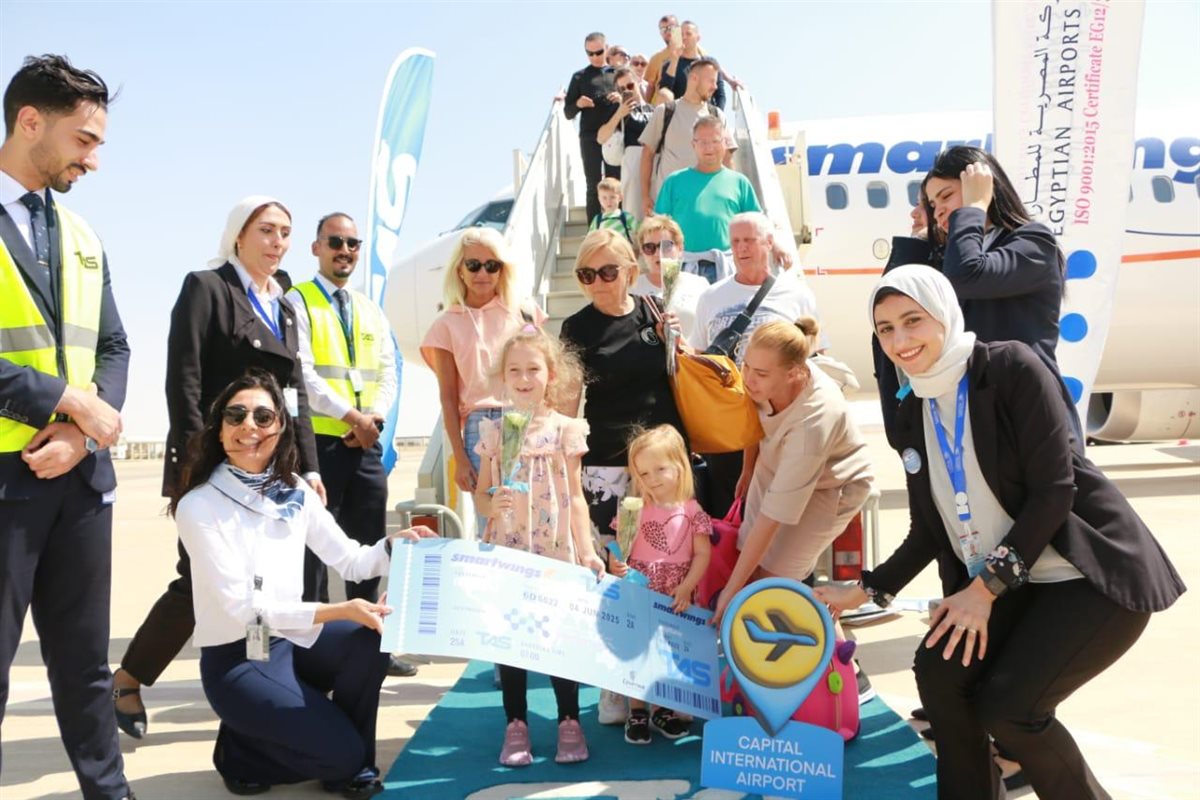مطار العاصمة الإدارية يستقبل أولى الرحلات القادمة من سلوفاكيا على متنها 152 راكبا (صور)
