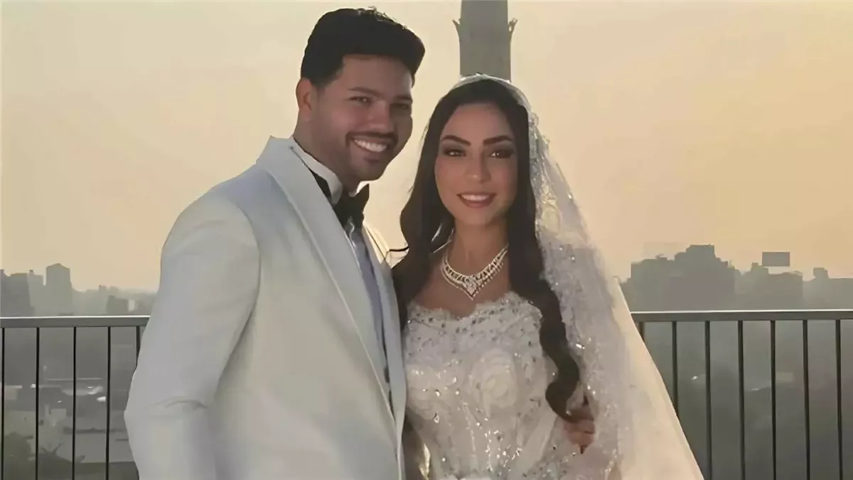 وأجرى العروسان جلسة تصوير رومانسية في أحد فنادق القاهرة المُطلة على نهر النيل، ظهرا خلالها في لقطات عكست الإنسجام والحب بينهما، وجاءت الصور لتوثّق هذه المناسبة في أجواء حالمة وراقية.
