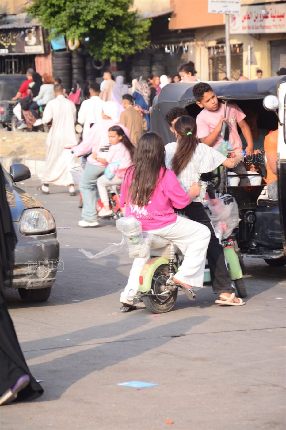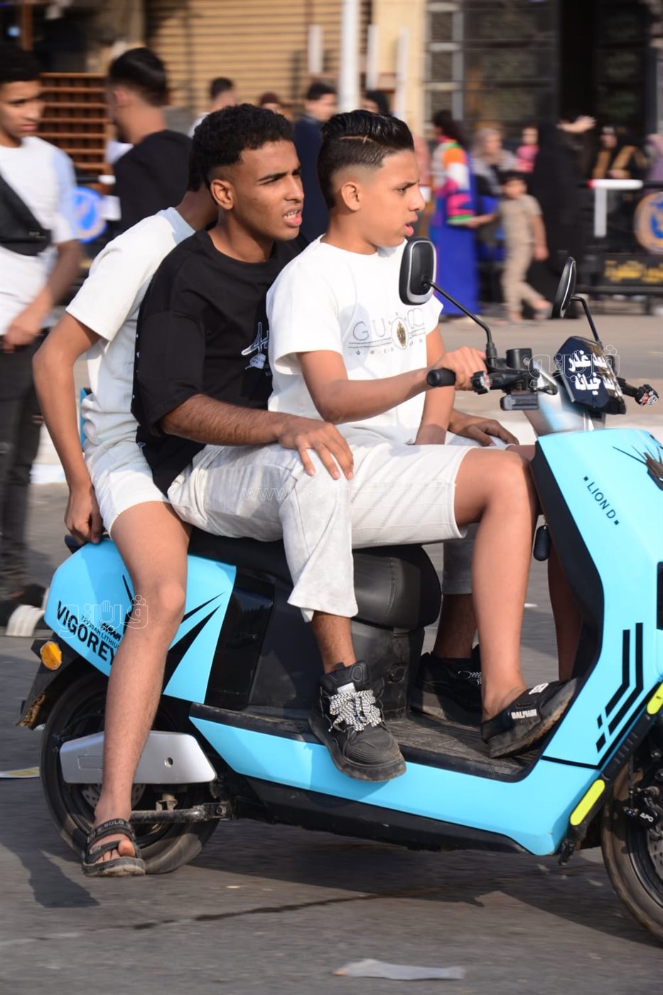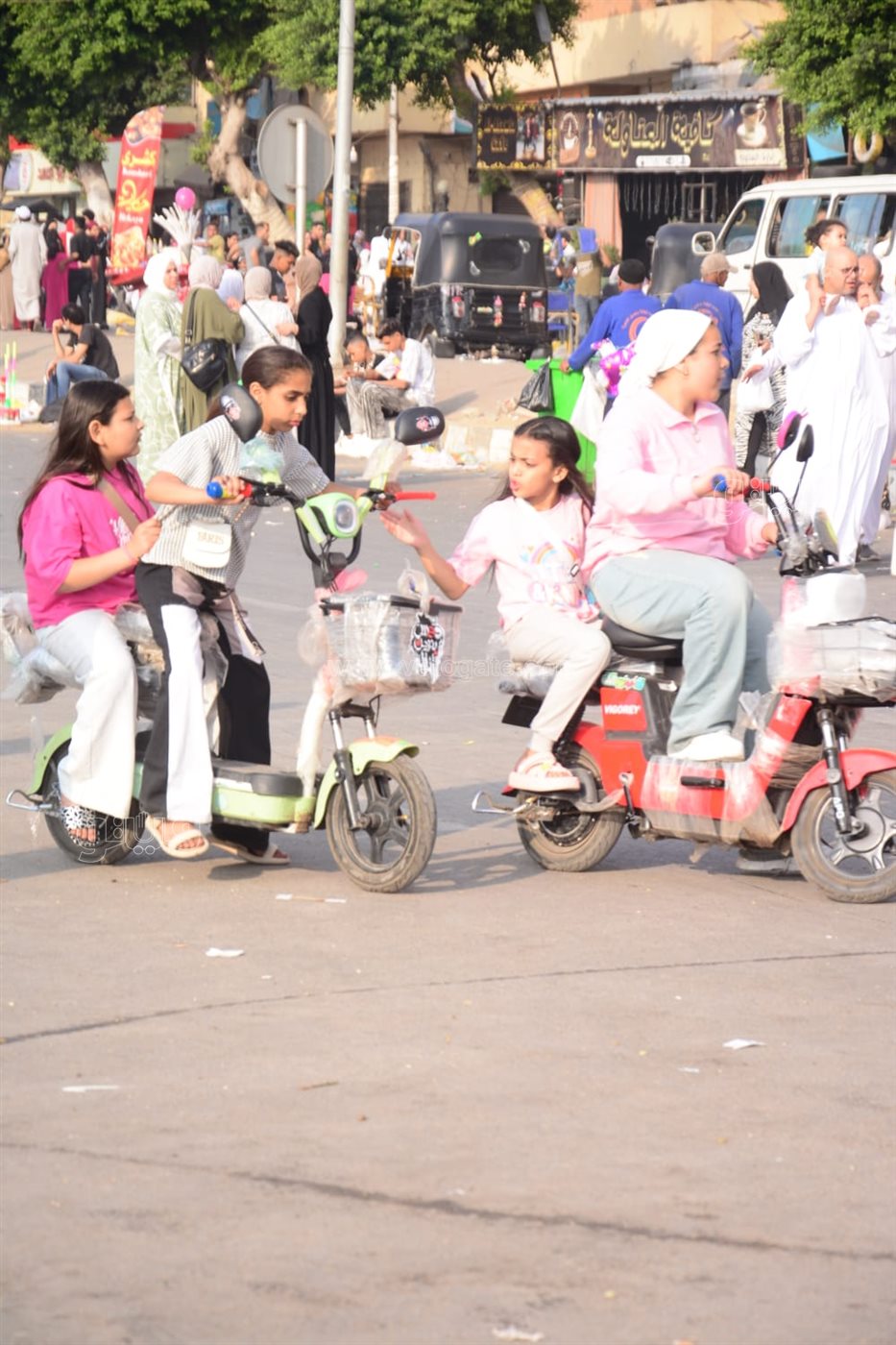 أقبل الأطفال والشباب في جامع عمرو بن العاص بعد أداء صلاة عيد الأضحى المبارك على تأجير وركوب الدراجات الكهربائية في ساحة المسجد احتفالًا بالعيد في أجواء من الفرحة والسعادة.