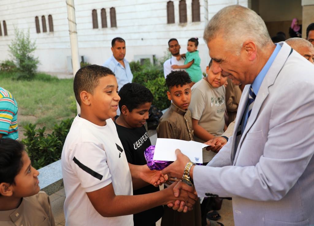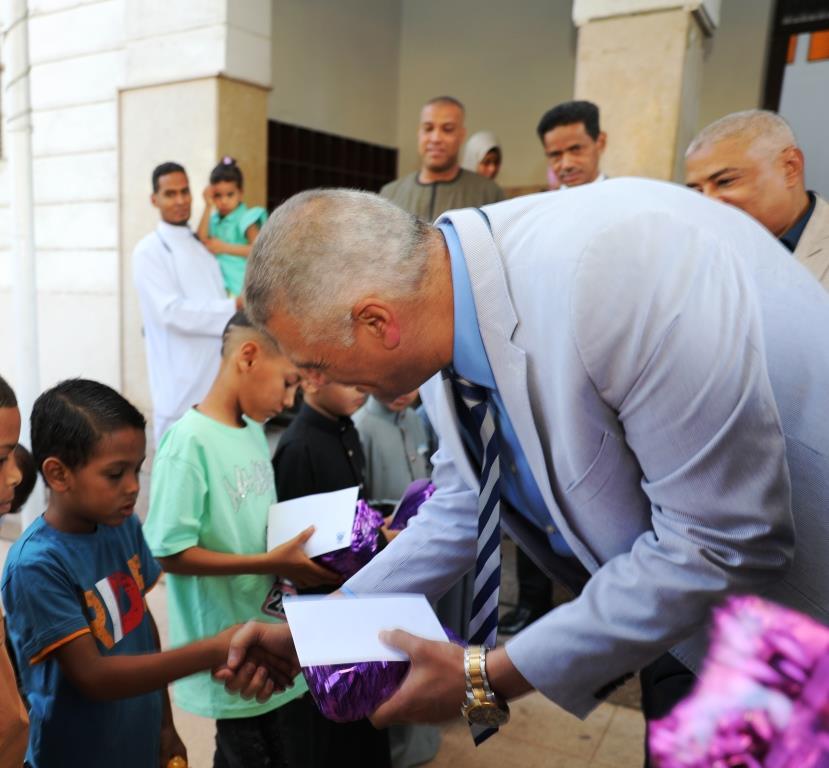 محافظ أسوان يوزع كروت تهنئة رئيس الجمهورية والعيدية على الأطفال (صور)