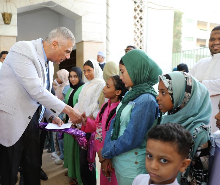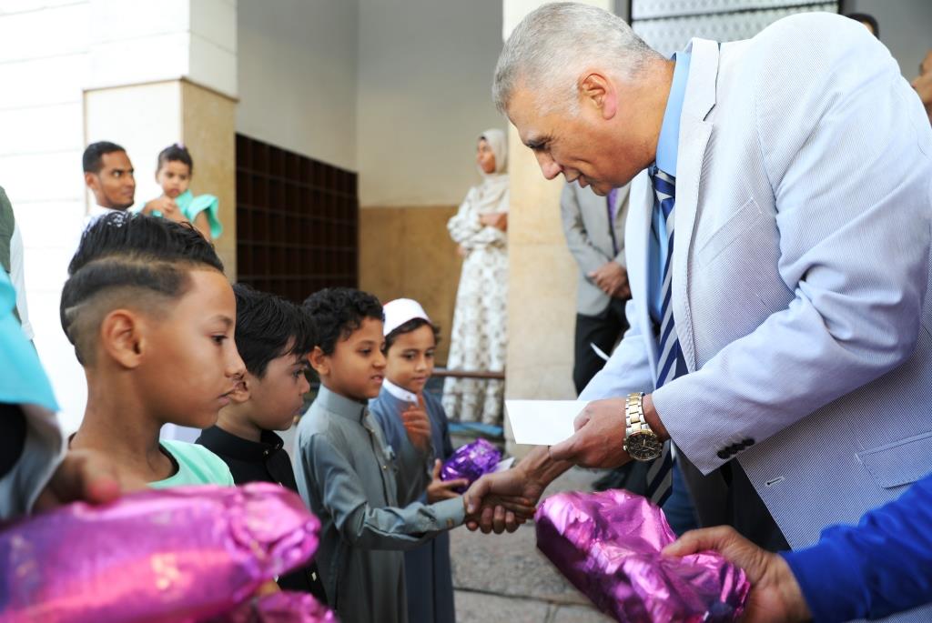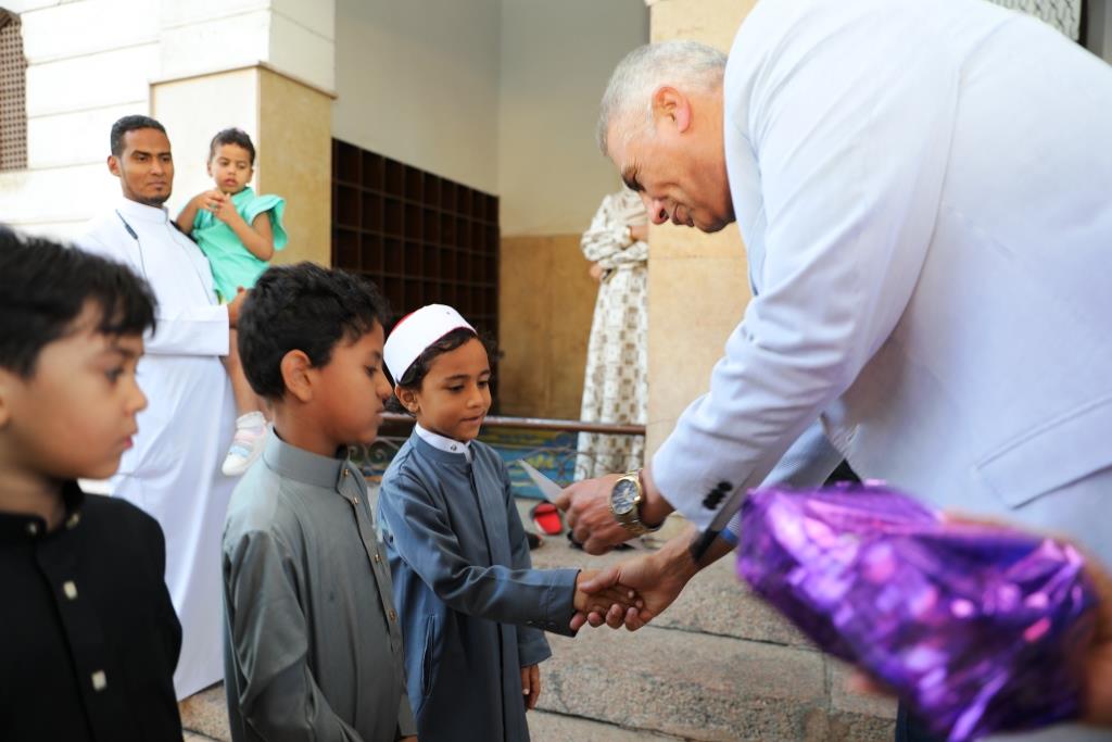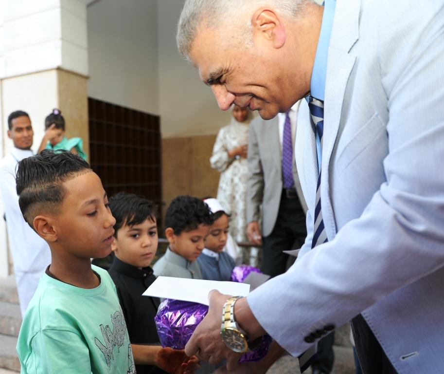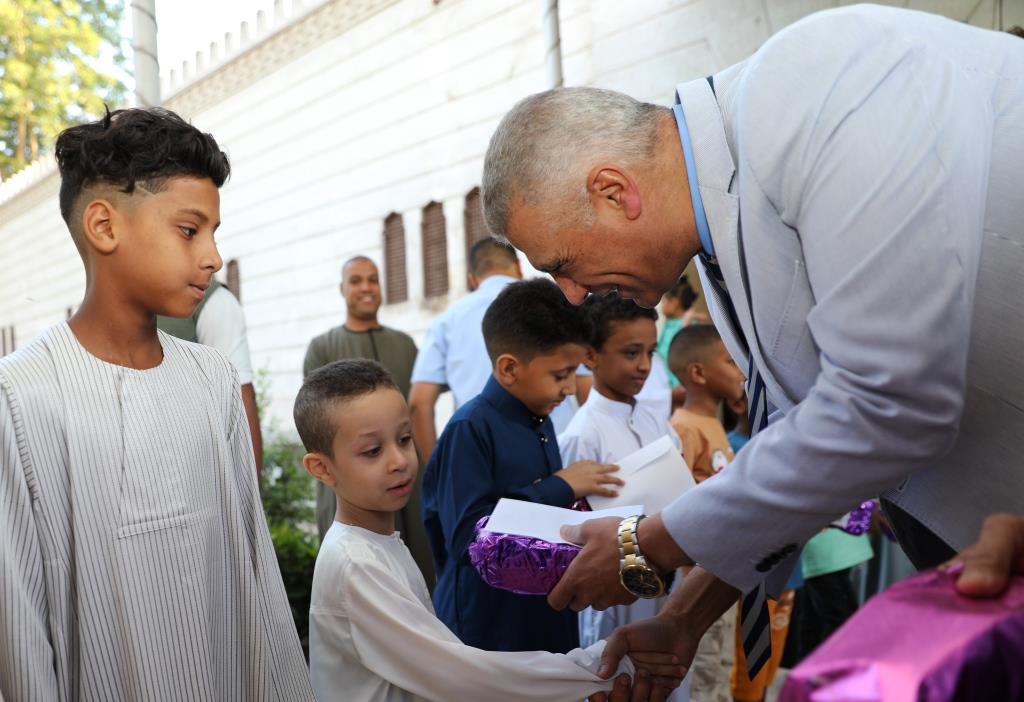 وتم توزيع الهدايا والعيدية على الأطفال الأيتام الذين شاركوا المحافظ صلاة العيد بمسجد النصر من المركز الرياضي للأيتام التابع لوزارة الشباب والرياضة، بالإضافة إلى الأطفال المرافقين لأسرهم من رواد المسجد، مما أضفى حالة من البهجة والسرور والسعادة عليهم.