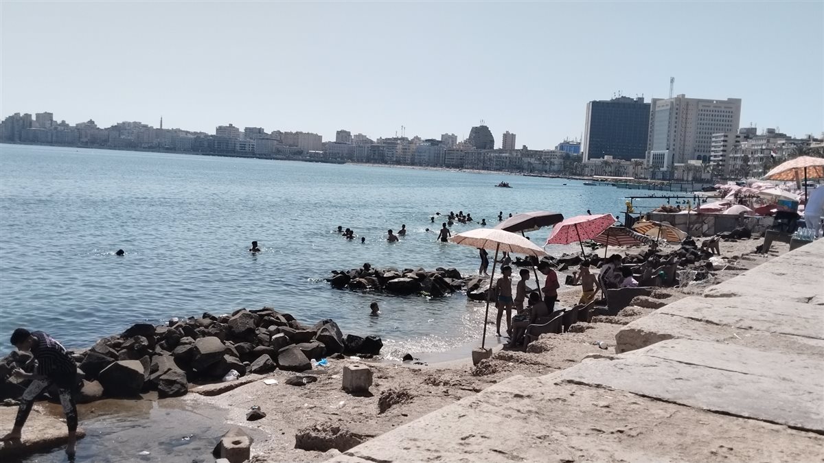 أهالي الإسكندرية يتوجهون إلى الشواطئ هربا من حرارة الطقس (فيديو وصور)